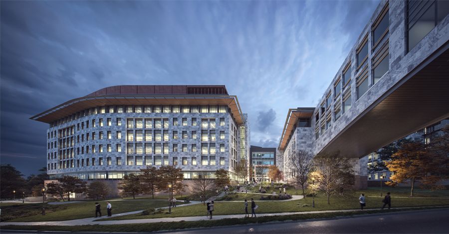 Currently under construction, the HSRB-II will feature an open, welcoming plaza that connects to the adjacent HSRB-I. The new building’s eight floors—six above grade and two partially below—will supply 346,000 gross square feet of space for groundbreaking, translational research.